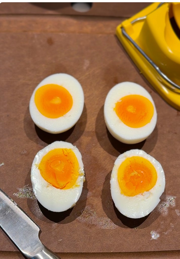 下邊兩顆是剝殼有點失敗,且用刀切的水煮蛋,對比上邊完美剝殼,且用切蛋器切割的水煮蛋,你喜歡哪個呢?