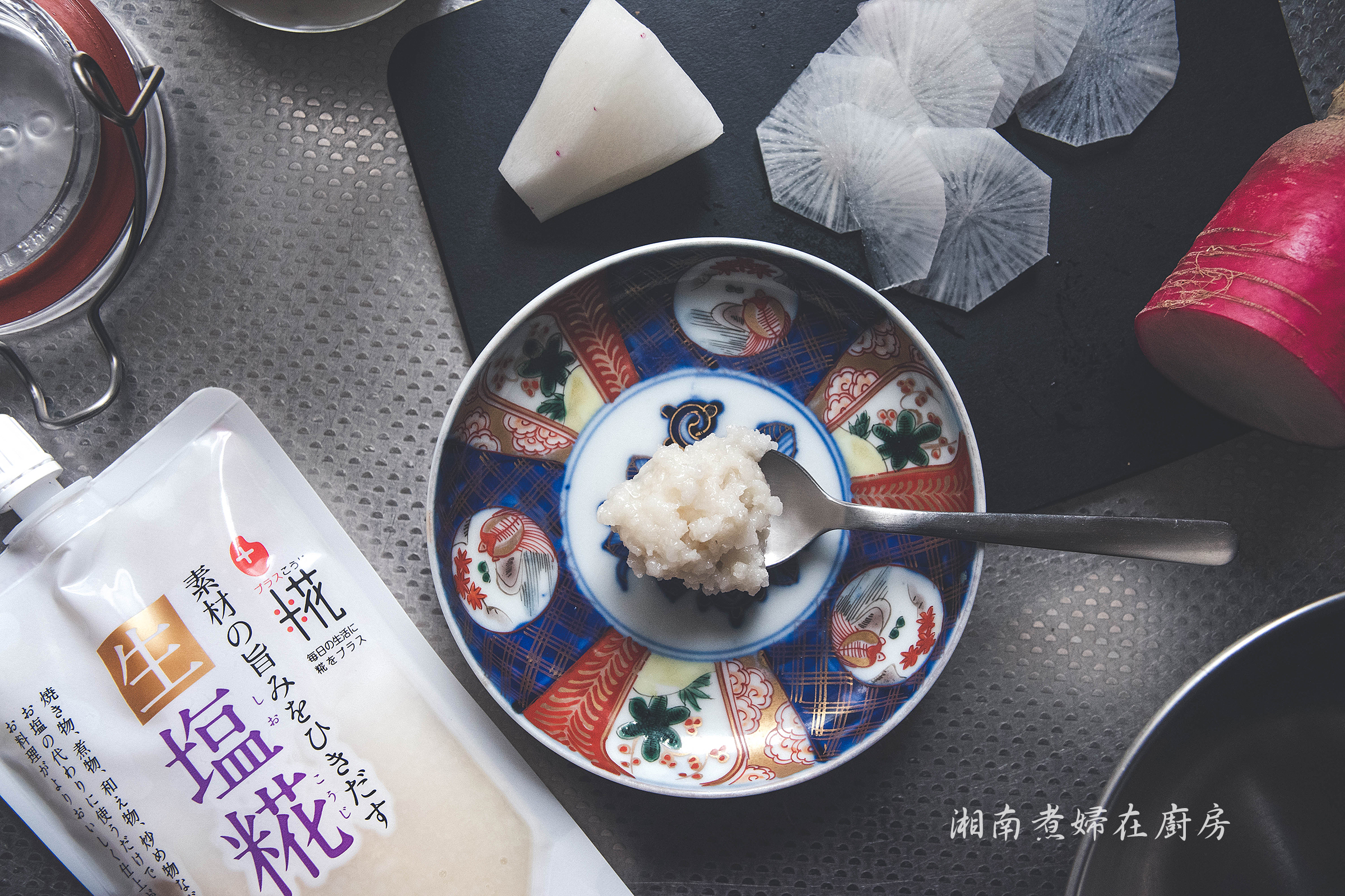 日式鹽麴其實就跟台灣客家做紅糟一樣,都是用米麴發酵,不同的是,鹽麴只有加了鹽跟水而已,適當的溫度,就可以讓鹽麴發酵,產生有益腸道的好菌,當作調味料,更可以讓料理滋味瞬間升級。