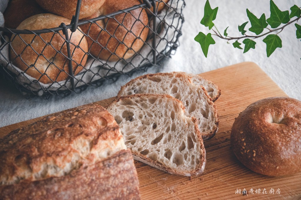 做歐包時,最容易因為別人說不要揉太多,所以不敢揉,造成麵團沾黏的問題。但其實不只是揉不夠,麵筋沒有完全生成,會造成即使發酵後麵團沾黏,跟麵粉本身的特性也有關,日本麵粉,麵筋生成較不易,相較於法國麵粉,需要較多的揉合時間,如果喜歡日本麵粉做出來的麵包口感,又不喜歡處理太沾黏的麵團,多些手粉,多揉一些,或是用翻折法,讓麵筋自然生成,適量添加一定比例的法國麵粉,也是很好的方法。
