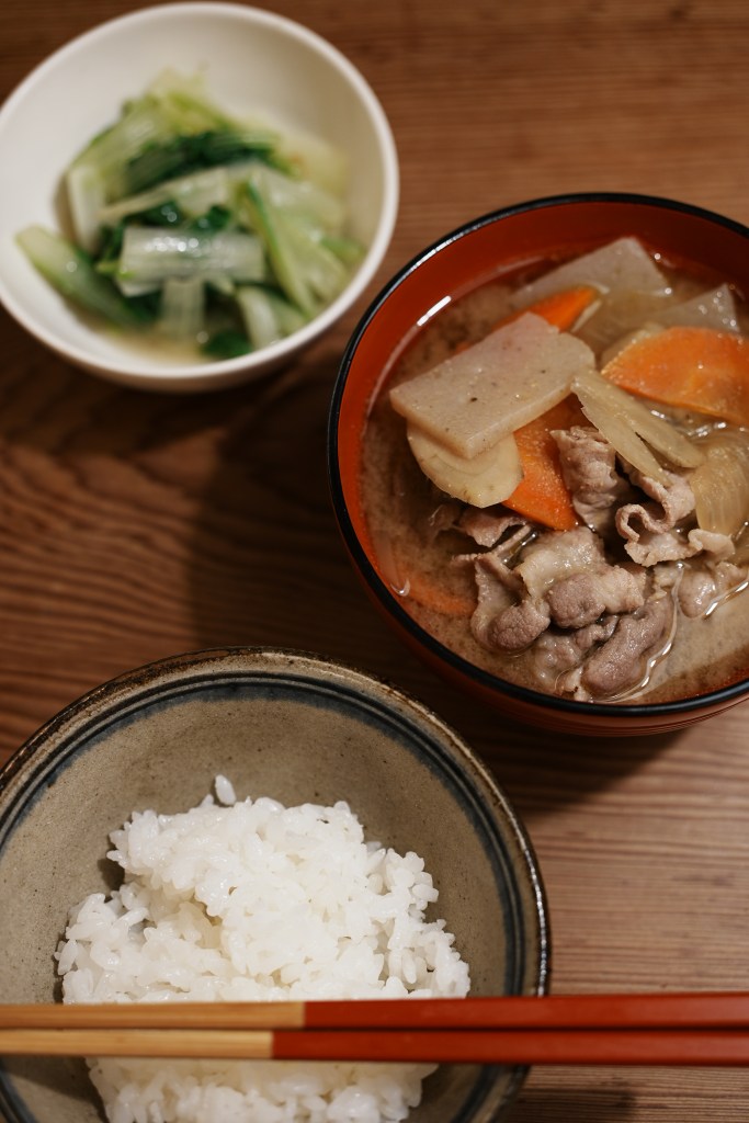 在日本,豬肉味增湯是非常日常的湯品,任何想吃的蔬菜都可以加。你可能想不到的蕃茄、四季豆也都可以喔。